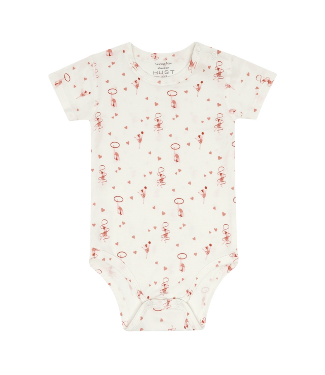 Kurzärmliger Body aus weicher, dehnbarer Bambusviskose. Verfügt über einen Knopfverschluss an der linken Schulter und zwischen den Beinen.