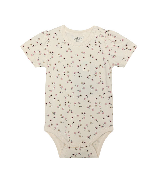 Kurzärmeliger Body mit Allover-Print von CeLaVi. Der Body besteht aus einer Bambus und Baumwoll Michung.