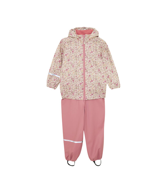 Recycelte Regenbekleidung mit Jacke und Hose. Die Regenjacke hat einen Allover-Druck und eine abnehmbare Kapuze mit Druckknöpfen. Die Jacke ist an den Handgelenken und am Saum elastisch und lässt sich mit einem Reißverschluss und Druckknöpfen leicht schließen. Die Kapuze hat einen Gummizug im Gesicht, damit sie eng am Kopf anliegt. Die Regenhosen sind bis Größe 100 mit verstellbaren CeLaVi-Gurten und ab Größe 110 mit elastischem Bund erhältlich. Die Regenhose hat elastische Stiefelriemen. Das Set hat reflektierende Prints an den Ärmeln und Beinen. Der Regenmantel hat eine Wasserdichte von 10.000 mm mit verschweißten Nähten und ist absolut wasserdicht.