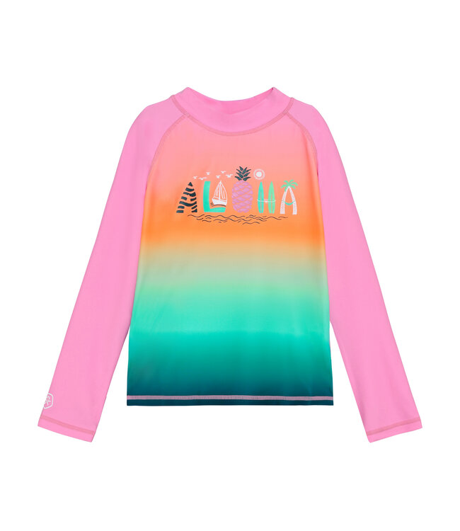 Schwimm-T-Shirt mit sehr hohem UPF 60. Das T-Shirt hat einen Druck auf der Vorderseite, Raglanärmel und eine Passform am Halsausschnitt. Lesen Sie mehr.