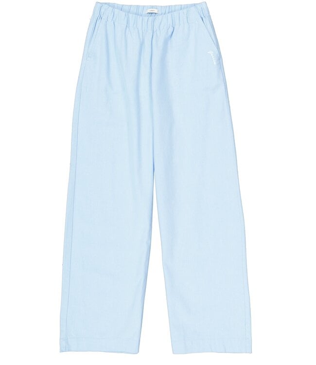 Chambray-Hose aus einer Baumwoll- und Leinenmischung. Diese Hose hat einen elastischen Bund, eine mittlere Taille und eine lockere Passform. Dieses Kleidungsstück besteht aus 70% Baumwolle und 30% Leinen.