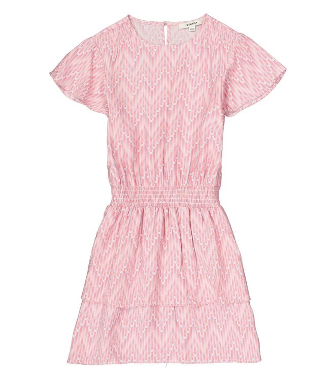 Kleid mit einem verspielten Allover-Druck. Dieses Kleid hat einen runden Ausschnitt, kurze Ärmel, einen elastischen Taillenbund und eine normale Passform.
