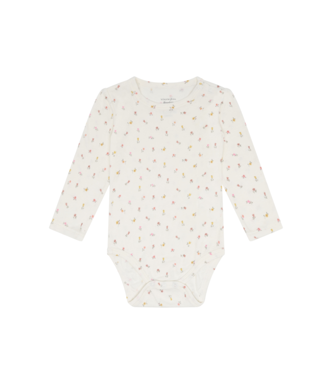 Langarmbody aus weicher, dehnbarer Bambusviskose. Verfügt über einen Knopfverschluss an der linken Schulter und zwischen den Beinen.