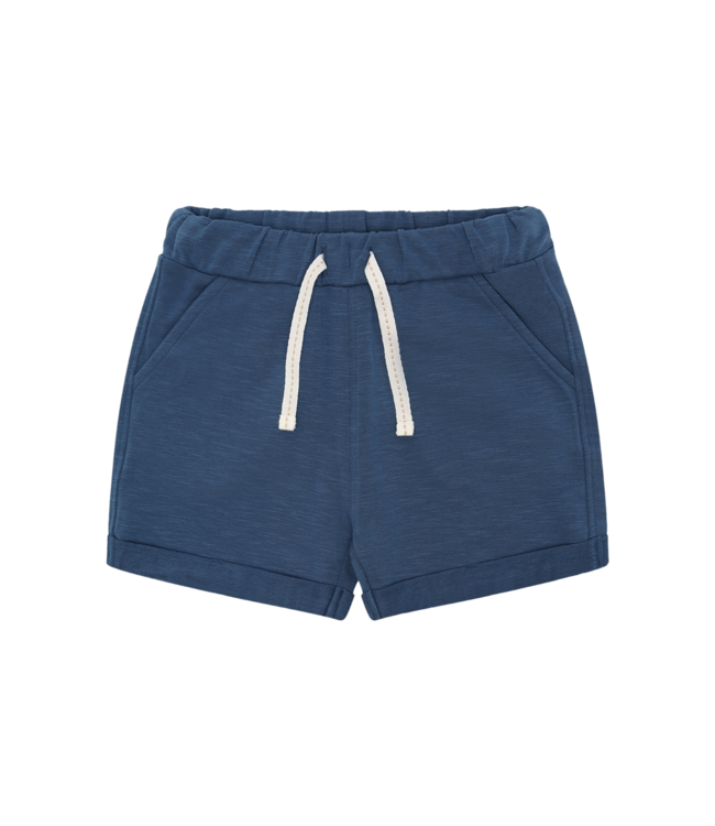 Shorts aus gewebter Baumwolle mit einem Elastikbund und einem Schnürband in der Taille. Dieses Modell hat Taschen vorne und hinten sowie umgeschlagene Hosenbeine. Mit einer anpassbaren Taille ausgestattet.