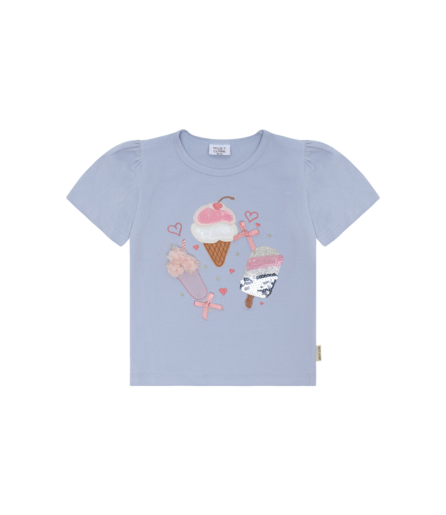 Kurzärmeliges T-Shirt aus weicher, dehnbarer Baumwolle mit Raffungen an den Schultern und mit elastischen Ärmeln. Dieses Produkt besteht zu 95 % aus Bio-Baumwolle.