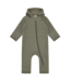 Overall aus weicher, warmer gekochter Wolle mit durchgehender Knopfleiste vom Hals bis zum linken Fuß. Die Ärmel und Beine haben auf der Rückseite eine zusätzliche Stofflage, die umgeschlagen werden kann – beispielsweise können die Füße wie eine Socke umgeschlagen werden. Durch das Kochen wird die Wolle dicht und wasserabweisend. Dieses Produkt wird in der EU hergestellt.