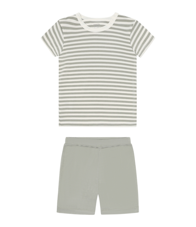 Pyjama-Set mit einem gestreiften T-Shirt und Shorts aus weicher, dehnbarer Bambusviskose. Diese Shorts haben einen Elastikbund in der Taille. Lesen Sie mehr.