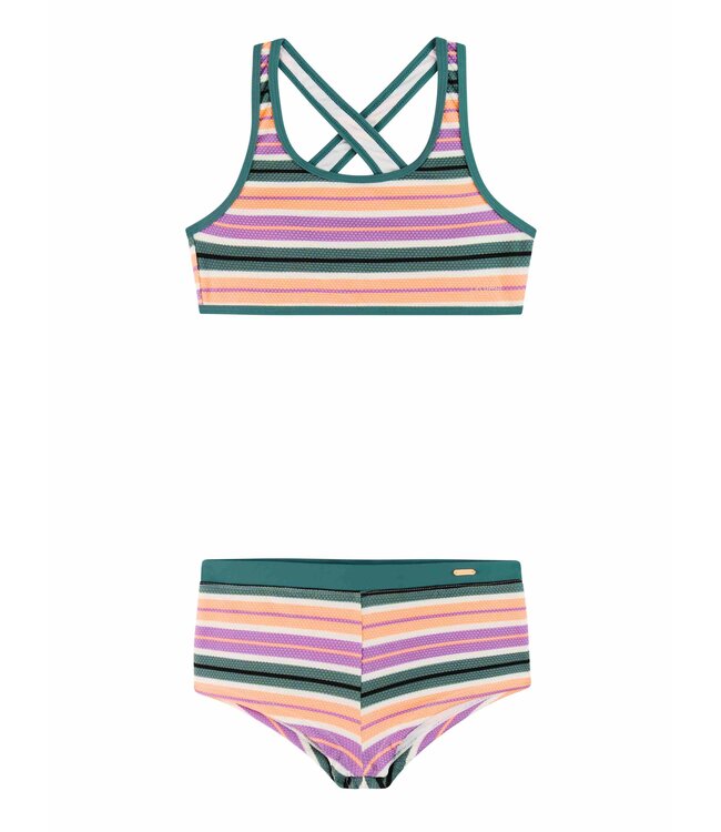 Die PRTNinja JR von Protest ist ein verspielter Bikini mit sportlichem Look, perfekt für junge Strandliebhaberinnen. Die breiten, elastischen Bänder und der schnelltrocknende Stoff sorgen für Komfort und eine gute Passform. Der auffällige Print bringt eine Extraportion Protest-Energie in jeden Strandmoment. Egal ob Surfen, Schwimmen oder Sandburgen bauen, mit der PRTNinja JR bist du bereit für jedes Abenteuer.