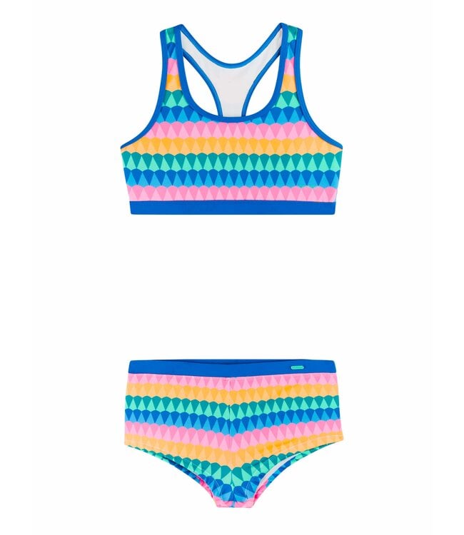 Die PRTTessel JR von Protest ist ein trendiger Bikini, der Stil und Komfort vereint. Das Top bietet dank sportlichem Racerback Halt, während das schnell trocknende Stretchmaterial für höchsten Tragekomfort sorgt. Der fröhliche Print bringt eine sommerliche Vibes, die perfekt zu Strandabenteuern und Schwimmeinheiten passt. Mit der PRTTessel JR strahlen Sie Energie, Freude und Protest-Spirit aus.