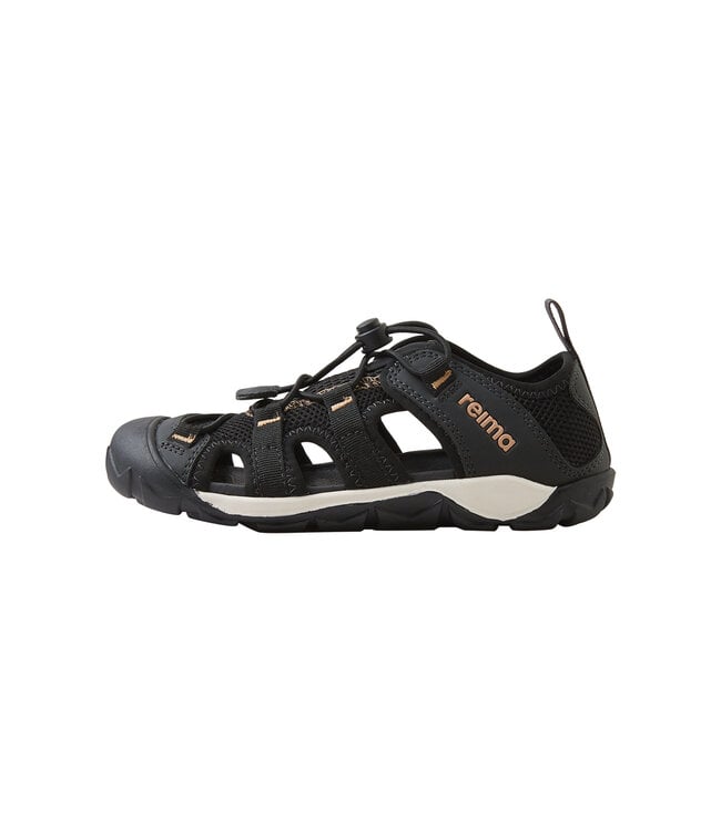 Diese bequeme Sandale mit Zehenkappe bewährt sich im Urlaub, bei Wanderungen und beim Spielen im Garten. Die weite Passform schränkt die Zehen nicht ein. Die strapazierfähige Gummisohle sorgt für guten Halt, und das EVA in der leichten Innensohle wirkt stoßdämpfend. Dank den elastischen Schnürsenkeln lassen sich diese Sandalen von Reima mühelos anziehen.