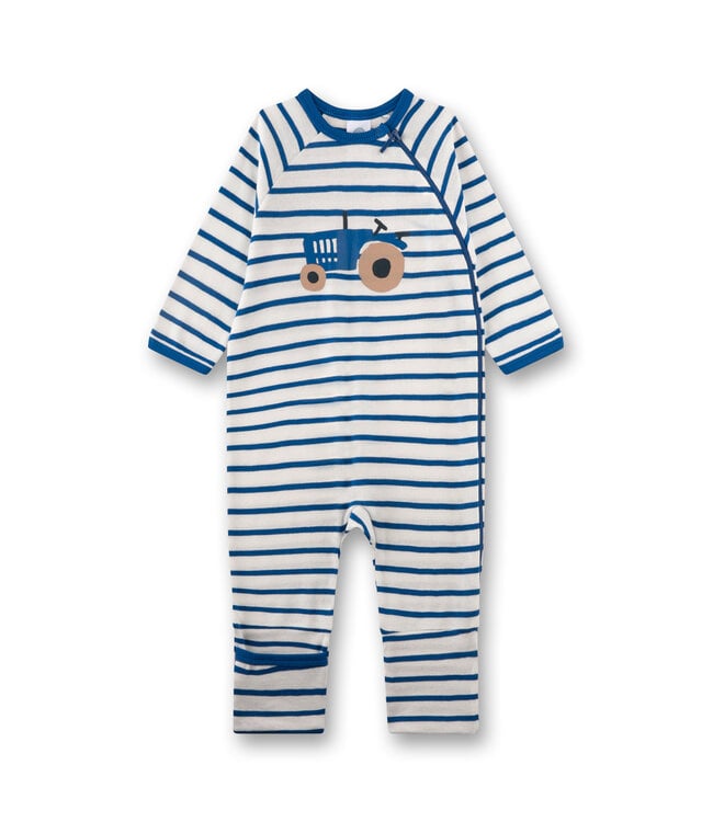 Entdecke den süßen Schlafoverall für Babys mit einem entzückenden Traktor-Print auf der Vordersiete von Sanetta, der ein Gefühl von Geborgenheit und Style vereint! Hergestellt aus 100% GOTS-zertifizierter Bio-Baumwolle, verspricht dieser hochwertige Schlafstrampler für Babys im blau-weißen Ringeldesign nicht nur ein angenehmes Tragegefühl, sondern kann auch bedenkenlos getragen werden und ist frei von Schadstoffen. Dieser Strampler für Babys ist zertifiziert nach GOTS und Ökotex Standard 100.