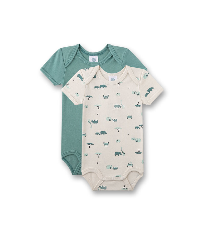 Versüße die Garderobe Deines kleinen Abenteurers mit dem Doppelpack kurzer Baby-Bodys von Sanetta! Mit einem farbenfrohen Jungleprint in lebhaftem hellgrün und einem modischen Uni-Khaki bieten diese Baby-Bodys aus 100% Organic Cotton nicht nur einen tollen Look, sondern auch höchsten Tragekomfort. Die anschmiegsamen Eigenschaften und die flexible Passform sorgen dafür, dass Ihr Kind sich frei bewegen kann. Die amerikanische Schulter verspricht ein kinderleichtes An- und Ausziehen.