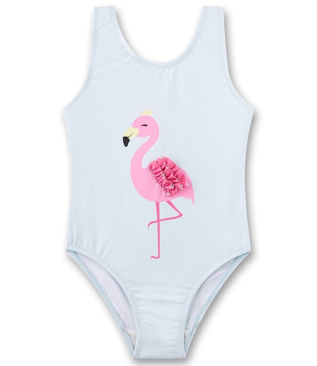 Verleihe dem Sommer einen Hauch von Abenteuer mit diesem bezaubernden Mädchen-Badeanzug von Sanetta! In frischem Türkisblau begeistert er mit einem pinken Flamingo-Motiv auf der Vorderseite. Der Materialmix aus 84% Polyester und 16% Elasthan sorgt für schnelltrocknende Eigenschaften – ideal für stundenlangen Badespaß. Ein kleiner Rückenausschnitt mit einer verspielten Zierschleife und die Rüschen-Applikationen verleihen dem Badeanzug einen besonderen Charme. Zudem schützt der UV-Schutz von 50+ die empfindliche Kinderhaut. Lass dein Kind in diesem tollen Badeanzug unbeschwert im Wasser spielen!