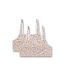Dieses verspielte Doppelpack Mädchen-Bustiers aus Single Jersey mit 47 % Baumwolle, 47 % Modal und 6 % Elasthan ist kuschelig weich, federleicht und angenehm anschmiegsam. Die verstellbaren Träger sorgen für einen perfekten, sanften Sitz. Das fröhliche Allover-Muster zeigt viele kleine bunte Blümchen und Blätter auf hellem Grund. Eine zarte weiße Schleife mit Spitzenborte am Ausschnitt setzt einen charmanten, verspielten Akzent, während der untere Saum mit einer feinen Spitzenkante hübsch gewellt ist. Sanft zur Haut, komfortabel und ideal für kleine Mädchen, die liebevolle Details mögen.