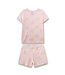 Dieses zauberhafte zweiteilige Mädchen-Schlafanzug-Set von Sanetta besteht aus einem kurzärmeligen T-Shirt und einer kurzen Hose in zartem Rosaton, gefertigt aus weichem Single Modal (50% Baumwolle, 50% Modal). Beide Teile sind mit einem verspielten Allover-Print dekoriert: Kleine Feen mit hellblonden Haaren, zarten Krönchen und pastellrosa Kleidern schweben über den Stoff. Die transparenten Flügel der Feen sowie die umgebenden Sternchen und kleinen Blüten verleihen dem Set einen märchenhaften, freundlichen und liebevollen Charakter. Die Shorts haben einen elastischen Bund für bequemen Sitz, und am Rundhalsausschnitt des Oberteils sitzt eine kleine Schleife in der Mitte, die einen charmanten Akzent setzt. Das leichte, anschmiegsame Material sorgt für angenehmen Tragekomfort bei warmen Nächten.