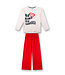 Der Mädchen-Schlafanzug besteht aus einem langärmeligen cremefarbenen Oberteil mit großem schwarzen Schriftzug „BE KIND TO YOURSELF“ und rotem Lippen-Print. Die rote Hose ist weit, gerade geschnitten und verfügt über einen elastischen Bund für bequemen Sitz. Hergestellt aus weichem Single-Jersey aus 100 % Baumwolle, bietet das Set angenehmen Tragekomfort und Bewegungsfreiheit. Modernes Design trifft auf eine positive Botschaft – ideal für Kinder, die es bequem und gleichzeitig stylisch mögen.