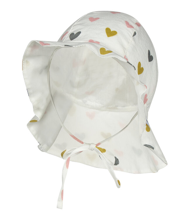 Ein luftiger Sommerhut mit verspieltem Herzchenprint.
