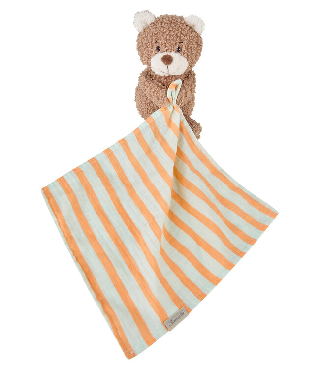 Das Schmusetuch L BÄR Bo verbindet ein Kuscheltier und ein Musselintuch in einem Produkt.